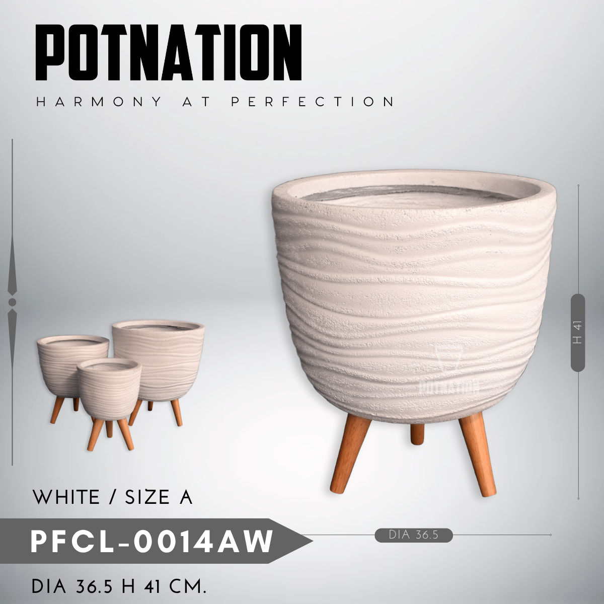 • Material: Fiber cement planters with wooden legs